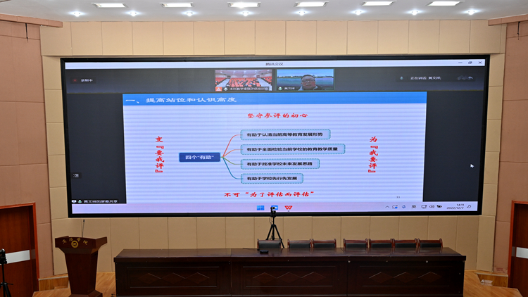 12月7日下午,永利官网在图书馆二楼报告厅召开本科教育教学审核评估工作培训会,邀请评估专家、常熟理工学院教学质量管理处处长黄文祥做了题为“新一轮审核评估学校评建实践”的线上报告。各职能部门主要负责人,二级学院(部)党、政主要负责人参加了培训会。会议由副校长刘宝盈主持。