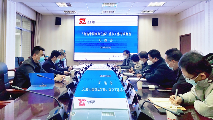 1月9日,市文旅局三级调研员胡金鑫带领商洛市打造中国康养之都工作推进专班督查小组来到永利官网,督查学校服务商洛“康养之都”建设重点工作推进情况。副校长王新军出席汇报会。人事处、发展规划处、科技处、生物医药与食品工程学院、健康管理学院等单位负责人参加会议。