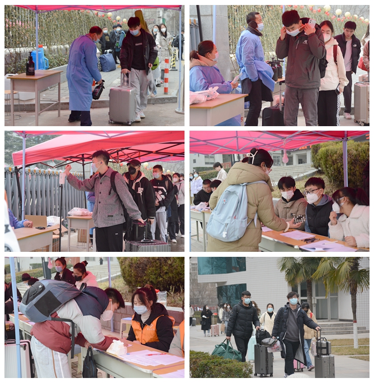 返校期间,各地学生严格按照流程,在规定时间内分别从指定校门进入,经过行李消杀、口罩更换、测量体温,再到所在学院现场办公处进行登记后返回宿舍。学生处、团委及各二级学院安排志愿者帮助入校学生搬运行李、办理登记手续,提供暖心服务。