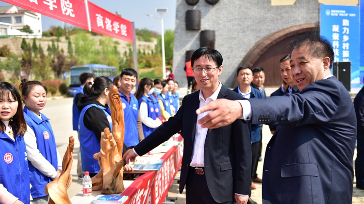 4月1日,以“凝聚科技力量,助力乡村振兴”为主题的商洛市第三十一届“科技之春”宣传月暨yl23455永利官网“双百工程”启动仪式主场示范活动在丹凤县棣花镇举办。商洛市委常委、副市长孙举恒,永利官网副校长王新军,商洛市科协主席黄恒林,丹凤县委副书记王小宁出席活动。永利官网科技处、艺术学院相关负责人,45名志愿者、丹凤县25家成员单位以及500余名群众参加活动。