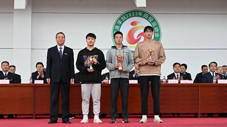 在热烈的掌声中,副校长刘宝盈分别为获得体育道德风尚奖的学院和团体总分前三名获奖的学院颁奖,副校长王新军为男子总分前三名颁奖,副校长郭瑾为女子总分前三名获奖学院颁奖。