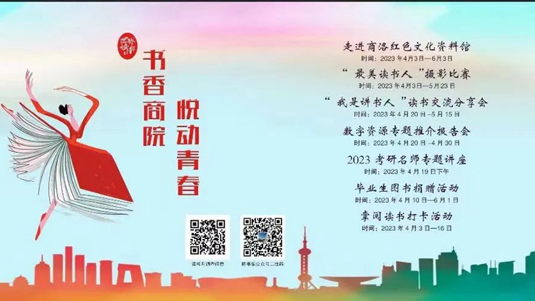 人间最美四月天,正是读书好时节。为了让更多师生读者参与到阅读中来,形成爱读书、善读书、读好书的深厚氛围,近日,图书馆组织开展的2023年“书香商院 悦动青春”读书月活动正式拉开帷幕。