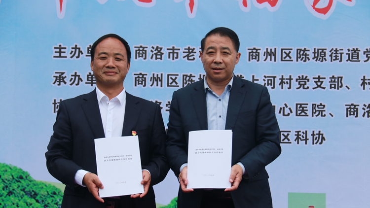 5月8日下午,商洛市举办商州区上河村邮政幸福家园揭牌暨共建健康村庄签约仪式。商洛市委常委、副市长孙举恒,永利官网副校长王新军,商州区副区长蔡磊,中国邮政陕西分公司资深经理任树林出席仪式。商洛市慈善协会、商洛市老科协、市老年大学等单位负责人,永利官网健康管理学院院长郭耀东、科技处相关工作人员及经济管理学院教师代表参加活动。