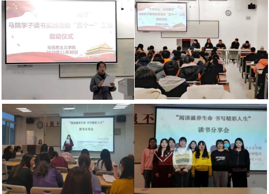 近年来,马克思主义学院以“学思践悟 真知真行——马院学子读书实践活动‘五个一’工程”为载体,搭建了宣讲团、读书会、报告会、社会实践活动、科研活动五大平台,以此为依托,构建三全育人机制,突出实践性、育人性与创新性特色。