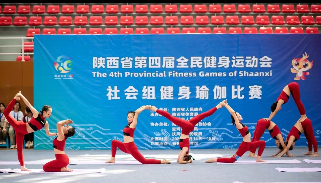 9月14日至15日,陕西省第四届全民健身运动会健身瑜伽比赛在宝鸡市扶风县顺利举行。永利官网代表队分别获得红色瑜伽规定套路第一名、集体自编项目第四名、小集体自编第五名和第六名,永利官网获得优秀组织奖。