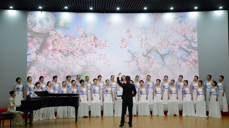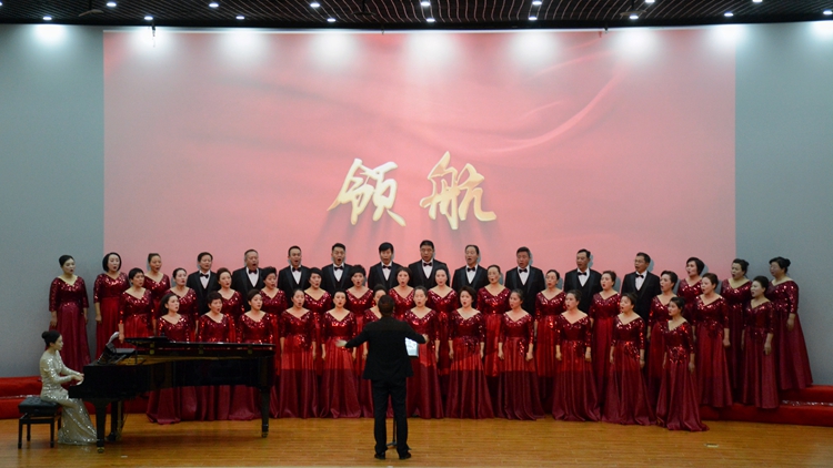 商州红梅声歌合唱团表演了混声合唱《领航》、女声合唱《桃花红杏花白》等曲目,用绚烂的乐声表达亿万中华儿女爱党爱国的赤子情怀和共同心声,演绎了山西民歌蕴含的民族艺术魅力,激发观众对美好世界的追求,传递了立德树人、美育启智的价值理念。