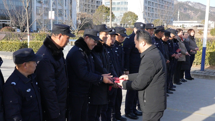 福蛇贺岁,情暖商院。1月28日,正值除夕佳节,副校长郭瑾、张向东分别赴北新街校区、丹江校区看望慰问坚守岗位的保卫、后勤等坚守一线的教职工,代表学校为他们送上慰问金并致以节日问候和新春祝福。党委办公室·院长办公室、保卫处、后勤保障处相关负责人陪同慰问。