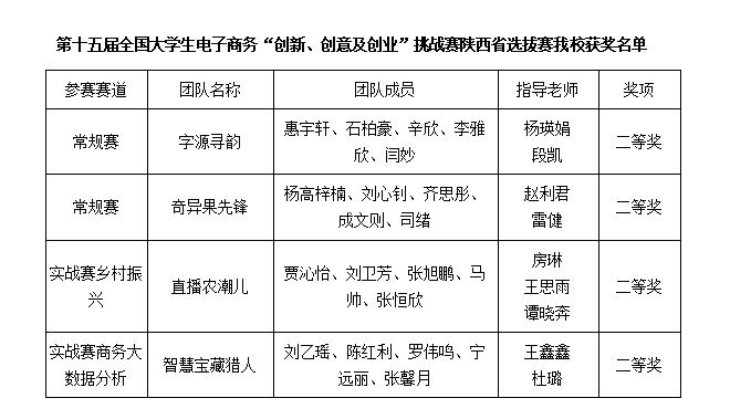 5月9日至10日,第十五届全国大学生电子商务“创新、创意及创业”挑战赛陕西省选拔赛在西安邮电大学举行。永利官网入选省赛的4支队伍均获得二等奖,其中常规赛道2项,实战赛道2项。