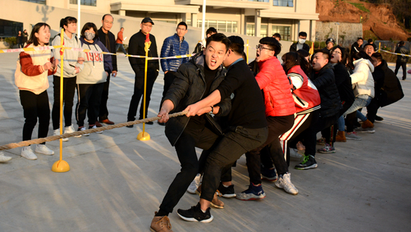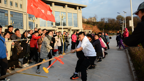 为了扎实推进“阳光体育运动”,增强集体凝聚力,根据《yl23455永利官网2018年冬季健身活动方案》安排,11月19日至20日,永利官网在教学综合楼前举行了一场激烈的冬季拔河比赛。校党委委员、教务处处长李超,团委、体育教学研究部等相关部门负责人参加了活动。