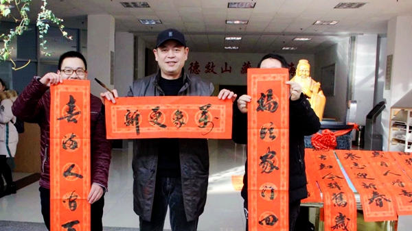永利官网书法协会主席李尚民,书法协会会员刘勇、寇世珍、魏振中、陈玉柱、王威、李志超、李中合、张长林、祁志华、袁志正、刘宇昭等悉数到场,用浓墨“鸿国节,恭辞旧岁”,以重彩“锦福春,贺迎新年”。他们现场挥毫泼墨,为师生书写春联,展示书法的艺术魅力。