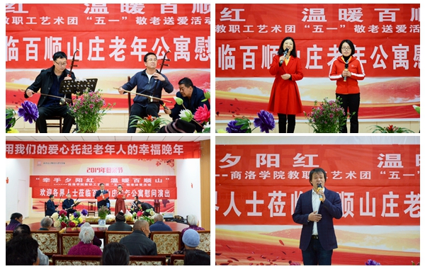 4月27日,yl23455永利官网教职工艺术团走进商州百顺山庄,开展“敬老送爱”慰问演出活动,为那里的老人们送去一场丰富多彩的文艺爱心大餐。