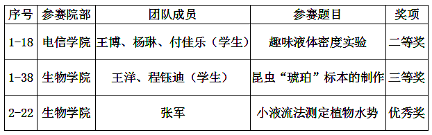 9月4日至5日,2019年陕西省科学实验展演大赛在陕西省科技资源统筹中心举办,永利官网电子信息与电气工程学院、生物医药与食品工程学院共派出3组师生参加大赛并分别获得二等奖、三等奖、优秀奖的好成绩。