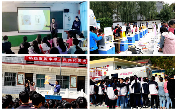 为扎实践行2019年全国科普日“礼赞共和国、智慧新生活”活动主题,进一步推进“双百工程”结对帮扶丹凤县工作,永利官网师生继9月11日在蔡川镇九年制学校成功开展科普公益活动后,9月26日,又将“科普大篷车”开进丹凤县红色革命热土——庾岭镇,为庾岭中学300余名师生带去了一场精彩的“乡村流动科技馆”校园展演。