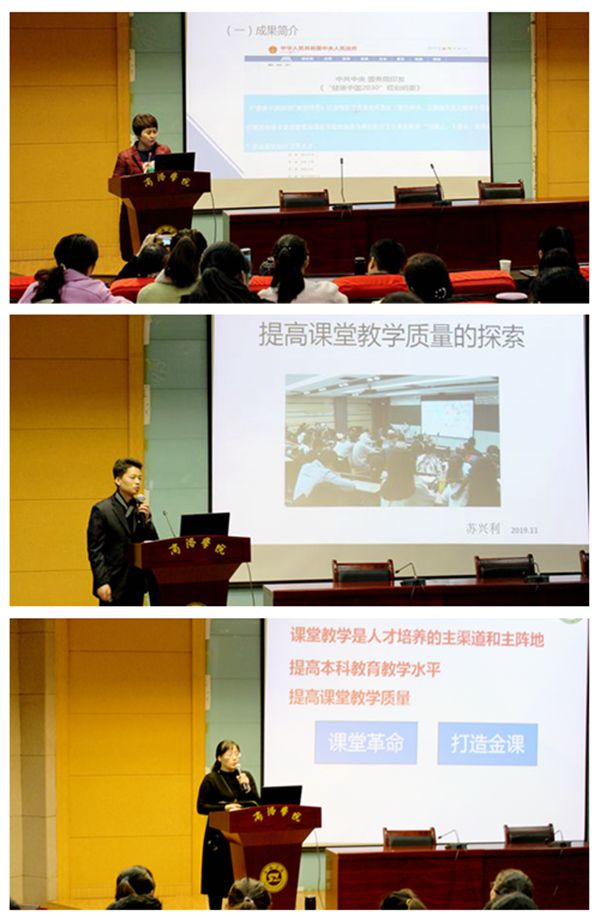 报告会上,和新盈作了题为《基于OBE教育理念,面向基层卓越医生培养的形态实验教学新体系构建与实践》的报告,从宏观角度向大家展示了如何选题、组织、申报教学成果奖;苏兴利作了题为《提高课堂教学质量的探索》的报告,他结合自己的切身体会,与大家分享了如何做一名好老师,如何上好一堂课;郑慧媛以《对分课堂在胚胎学教学中的应用与探索》为题,向大家讲解了陕西省第一届课堂教学改革创新大赛的比赛形式、参赛准备,并为大家进行了现场示范教学。三位专家的报告精彩纷呈、形式多样,与会教师纷纷表示,本次报告会启发了思路,开拓了视野,今后将努力汲取专家报告的精华为我所用,不断提高课堂教学水平。
