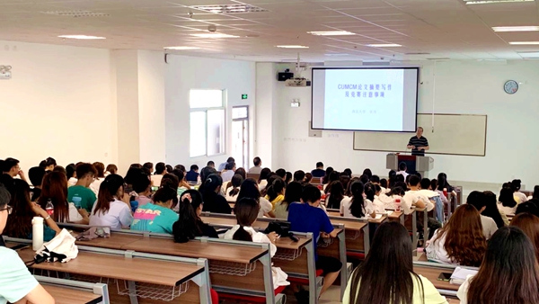 张博副教授现任全国大学生数学建模竞赛陕西赛区组委会副秘书长兼办公室主任,他以《数学建模论文摘要写作和竞赛注意事项》为题作数学建模专题报告。永利官网参加2020年全国大学生数学建模竞赛的学生和指导教师聆听了张教授的精彩报告。报告借助建模摘要典型案例分析,详解了建模竞赛论文摘要的写作方法,介绍了竞赛期间建模论文的提交、相似度检测以及竞赛纪律等注意事项,鼓励师生坚定信心、积极备赛。