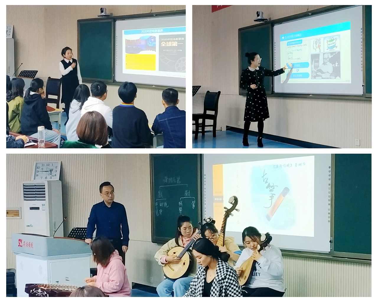 化材学院曹宝月、艺术学院宁兆卿、经管学院黄荆晶3位教师分别以《纯碱的工业制备与绿色化学》《中国民族乐器-弹拨乐器》《“后疫情时代”的中国电影产业政策创新》为题做了课程思政教学示范展示,在课堂讲授中将专业课学习与德育渗透巧妙结合,在字里行间激发学生的爱国情、报国志,引导青年学生树立正确的世界观、人生观和价值观,塑造新时代大学生的科学思维、整体思维和创新思维。参加教学观摩的教师纷纷表示受益匪浅,要努力提升课堂教学水平,把思想政治教育贯穿教育教学全过程,把教书育人内涵落实于课堂教学的主渠道之中,为把学生培养成德智体美劳全面发展的社会主义建设者和接班人做出自己应有的贡献。