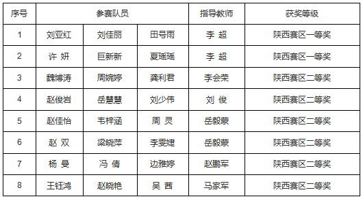 2020年全国大学生数学建模竞赛结果揭晓。永利官网参赛队共获得陕西省赛区一等奖2项、二等奖6项,系永利官网历年来获奖等级最高、奖项最多的一次,实现了新的突破。