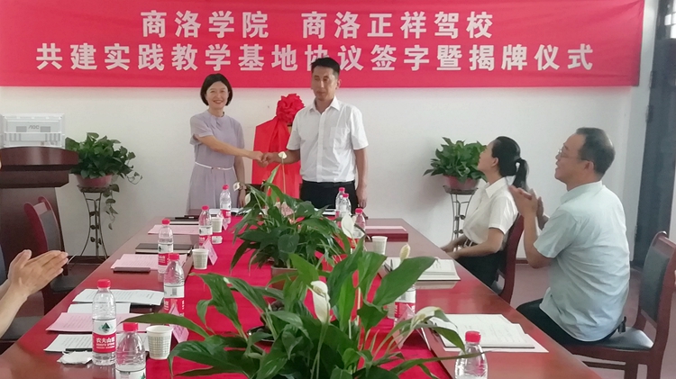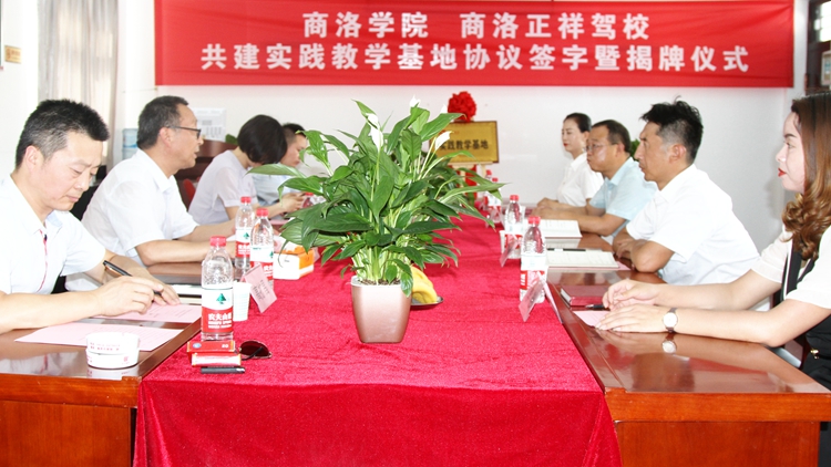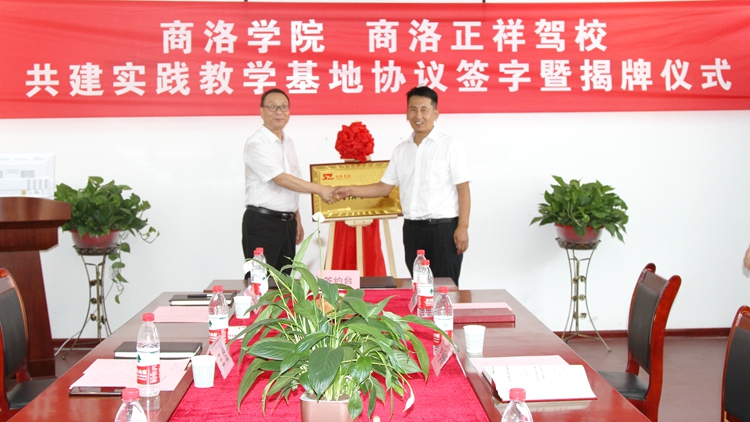 仪式上,刘宝盈、任继峰共同为基地揭牌。教务处处长王怡与任继峰分别代表学校与商洛正祥驾校签订协议。