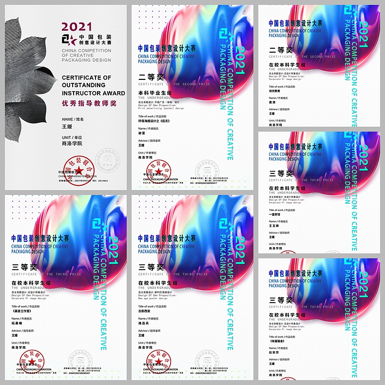 近日,由中国包装联合会举办的2021年中国包装创意设计大赛圆满结束,永利官网师生踊跃参赛,共获得二等奖2项,三等奖11项,优秀奖14项,1名教师获得“优秀指导教师”奖。