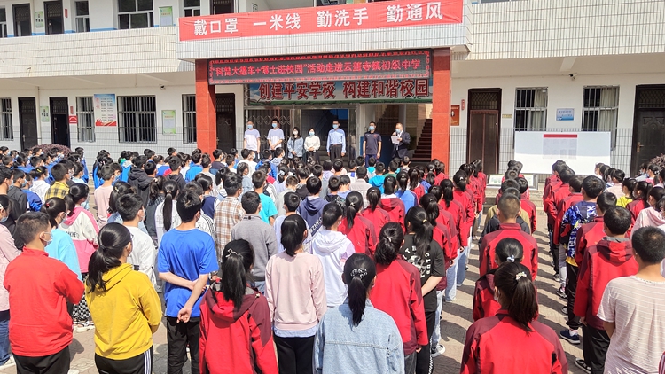 5月24日,2022年商洛市文化科技卫生“三下乡”集中示范暨第30届“科技之春”宣传月活动启动仪式在镇安县云盖寺镇举行,市委常委、市委宣传部部长、市文化科技卫生“三下乡”活动领导小组组长贾永安出席活动并讲话。云盖寺镇中学师生、各界群众代表参加启动仪式。永利官网“流动科技馆”师生为云盖寺镇中学等学校带来了丰富多彩的科普活动。