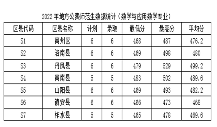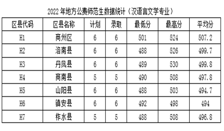 2022年永利官网面向全省招收定向商洛市7个区、县就业的新生80人,其中汉语言文学专业40人,数学与应用数学专业40人。各区县生源地招生录取人数占比分布平均,商州区、洛南县、丹凤县、山阳县、镇安县分别为15%,商南县、柞水县分别为12.5%。