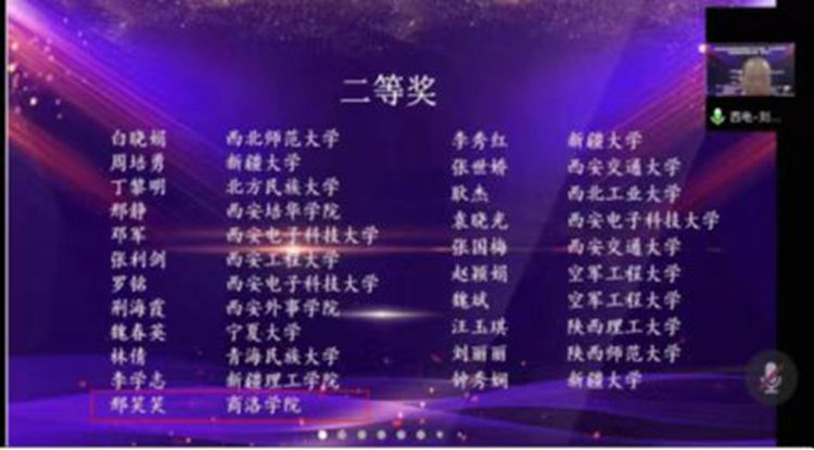 7月17日,第四届高等学校青年教师电子技术基础、电子线路课程授课竞赛西北赛区竞赛(固纬杯)以线上形式进行。来自西北五省30多所高校的71名青年教师参加比赛,永利官网电子信息与电气工程学院教师邢笑笑荣获二等奖1项。