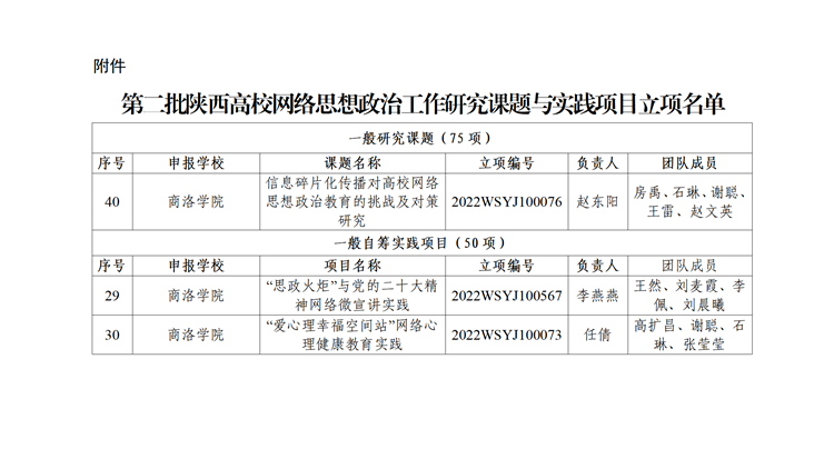 学校高度重视此次申报工作,面向校思想政治工作队伍进行课题征集,严把申报材料质量关。经学校申报、专家评审、立项公示等环节,最终赵东阳负责的《信息碎片化传播对高校网络思想政治教育的挑战及对策研究》一项一般研究课题,李燕燕负责的《“思政火炬”与党的二十大精神网络微宣讲实践》和任倩负责的《“爱心理幸福空间站”网络心理健康教育实践》两项一般自筹实践项目均获立项,为永利官网网络思政教育充实网络空间,提升科学性和系统性的研究奠定了坚实基础。