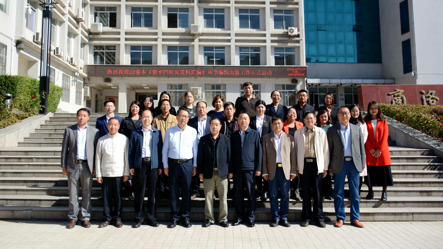 范新会向丛书编辑部主编、副主编、编辑颁发了聘书。王思怀宣读了丛书编委会、编辑部人员名单。刘宝盈和刘东风代表双方签订了合作协议。韩鲁华教授对《贾平凹研究资料汇编》丛书编辑出版的背景和意义做了介绍说明。