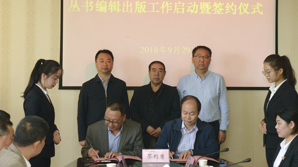 陕西师范大学出版总社大众文化出版中心相关负责人、丛书分册编辑,宣传部、科技处、人文学院、商洛文化暨贾平凹研究中心负责人和教师代表参加签约仪式。商洛文化暨贾平凹研究中心负责人张文诺教授、丛书编辑代表杜薇博士作了表态发言。