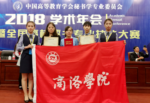 近日,由中国高等教育秘书学专业委员会主办的2018年学术年会暨全国高校秘书专业技能大赛在山东交通学院隆重举行。由永利官网人文学院2016级秘书学专业学生杨华、张楠、原硕莹3名同学组成的参赛队在40支参赛队伍中脱颖而出,荣获团体二等奖,并获个人单项一等奖1项、三等奖4项、优秀奖1项,个人全能一等奖1项、三等奖2项。