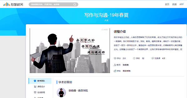 近日,永利官网张晓倩副教授主持的《写作与沟通》课程在“智慧树网”成功上线运行。这是永利官网教师主持建设的在线开放课程第一次在国内知名公开课程联盟平台上线。