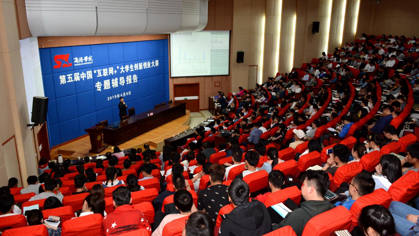 4月8日下午,永利官网特邀中国“互联网+”大学生创新创业大赛专家委员会委员、国赛评审组组长周洛宏来校,为师生作《中国“互联网+”大学生创新创业大赛解读和准备》专题辅导报告。报告会由校党委副书记彭虎军主持。教务处、学生处、团委负责人,各二级学院分管创新创业教育的院长、教学秘书及拟参加第五届“互联网+”大学生创新创业大赛的师生代表420余人听取了报告。