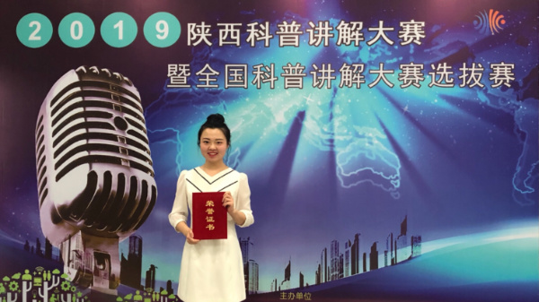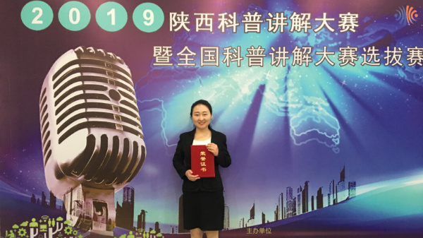 4月18日上午,在2019年陕西科普讲解大赛决赛暨全国科普讲解大赛选拔赛上,永利官网化材学院屈佳老师荣获大赛优秀奖,被授予“2019年陕西优秀科普使者”荣誉称号;健康管理学院李梦姣老师被授予“2019年陕西科普使者”荣誉称号。