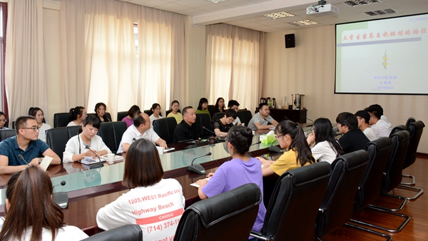 为深入学习贯彻习近平新时代中国特色社会主义思想特别是习近平总书记关于教育的重要论述,认真落实全国、全省教育大会,全国高校思想政治工作会议和学校思想政治理论课教师座谈会精神,推动永利官网领导干部全面落实“立德树人”根本任务,校党委制定印发了《yl23455永利官网加强和改进领导干部深入基层联系学生工作实施方案》。根据方案中关于校级领导班子成员讲思政课的要求,5月23日,校纪委书记王思怀以《大学生素养自我锤炼的路径》为题,为他所联系班级学生讲授了一堂别开生面的思政课。人文学院党总支、团总支负责人及相关教师旁听了课程。
