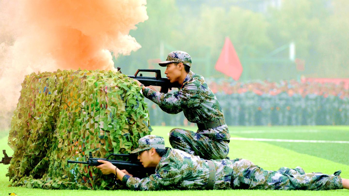分列式结束后,军训教官和学生进行了匕首操、花样队列、五步拳、擒敌术、反恐演练等汇报表演。女兵们表演的匕首操干净利落、整齐划一,将“巾帼不让须眉”之势展现的淋漓尽致;花样队列表演中同学们摆出“商院2020”“不忘初心、牢记使命”等字样,展现了商院学子勇担时代使命的志向决心;五步拳表演套路连贯、气势如虹,拳脚虎虎生威,擒敌术表演配合默契、果敢勇猛,尽显军人本色;反恐演练与战地救护,模拟展示了多种反恐战术队形、战术手语、战术基本持枪动作以及相对应的实战技能,将现场气氛推向高潮,引得师生阵阵掌声。