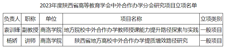 近日,陕西省高等教育学会公布了2023年陕西省高等教育学会中外合作办学分会研究项目立项结果,永利官网获一般项目立项2项。这是永利官网首次获批此类项目立项。