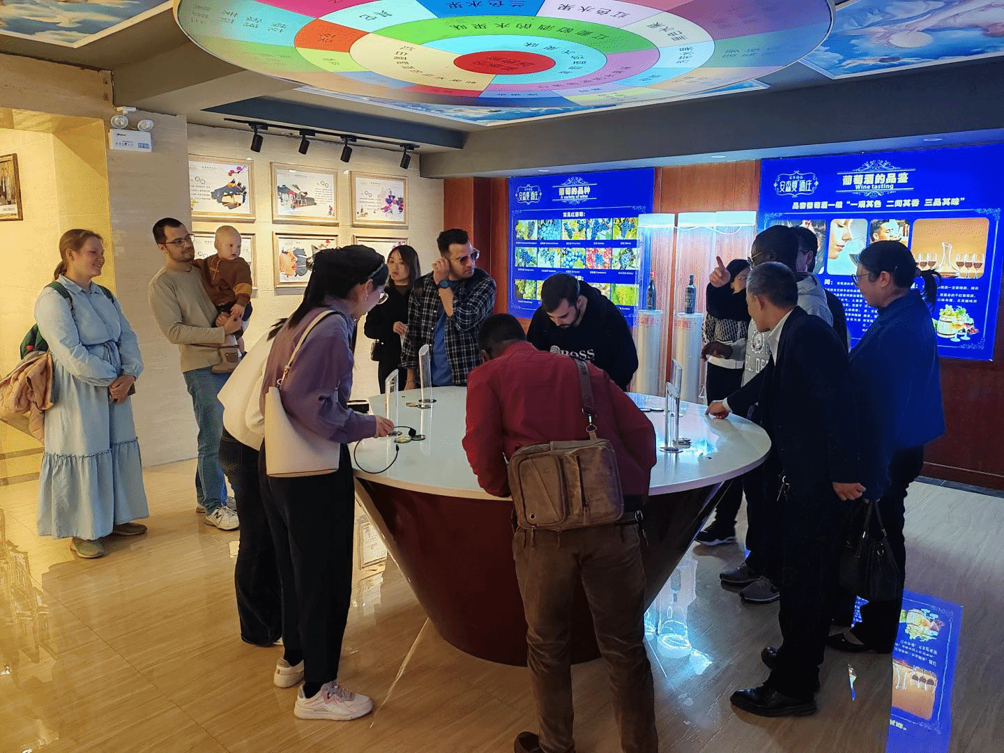活动第二阶段,外教来到丹凤安森曼葡萄酒庄酒庄,实地参观酒窖、酒庄,了解酿酒工艺、酒器酒具、酒的分类、酒文化历史等,感受丹凤特色酒文化的内涵和魅力。
