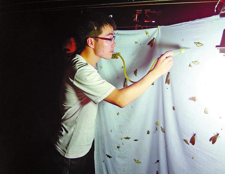 2011年,浙江天目山,王洋在夜间诱集昆虫