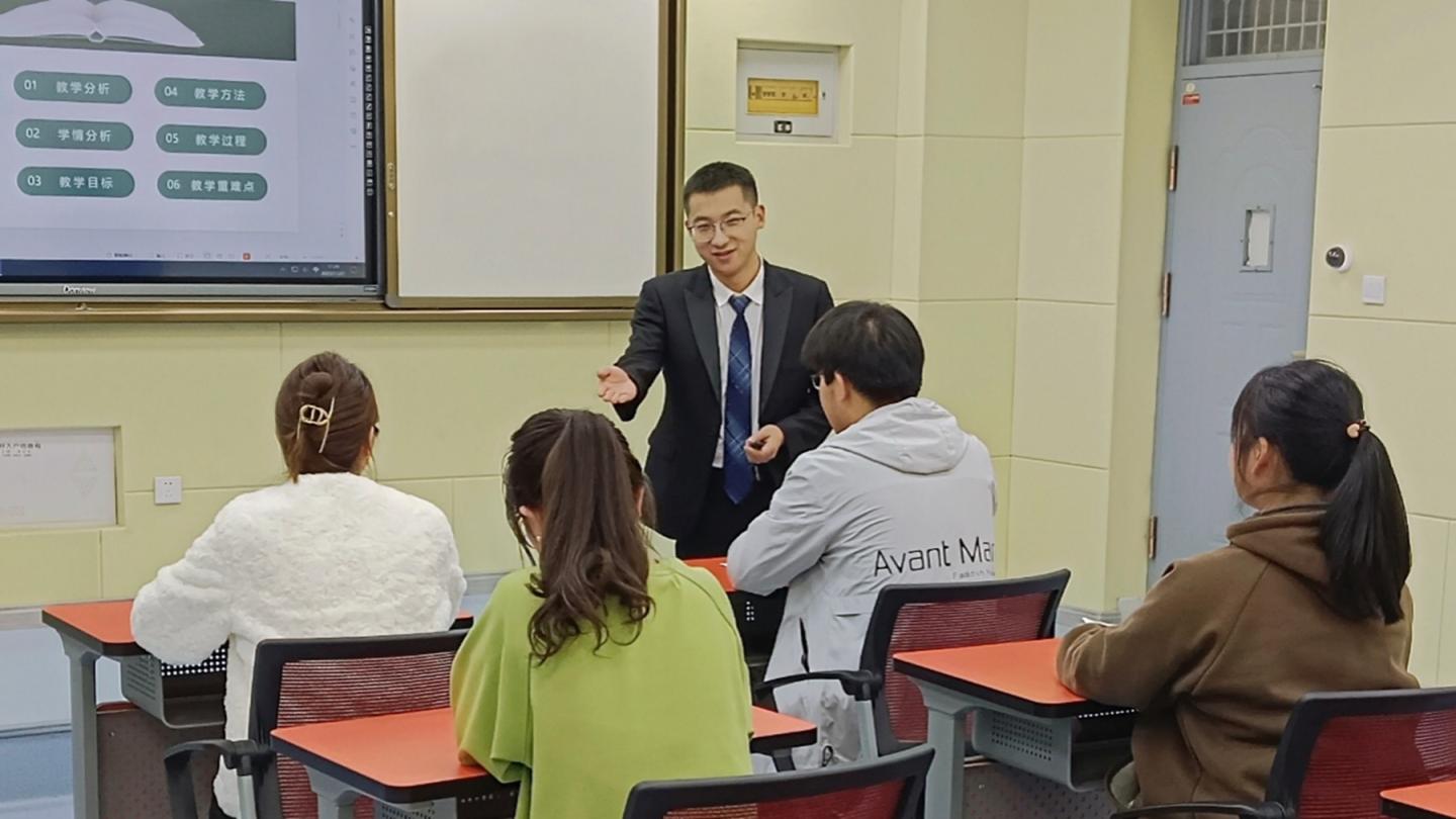 教学比赛是提升教学水平和指导学生能力的有效途径。作为新进教师,他同时参加了青年教师教学技能竞赛和课程思政讲课比赛,并获得学校青年教师教学技能竞赛二等奖和“课程思政教学骨干”称号。学生备赛时,他扮演了多重角色——既是“导演”,又是“演员”,模拟各种可能出现的场景,帮助学生提升临场应变能力。在不断的学习中师生共同成长,“学习不丢人,不会就去问,就去学”成为了他和学生们之间的共识。