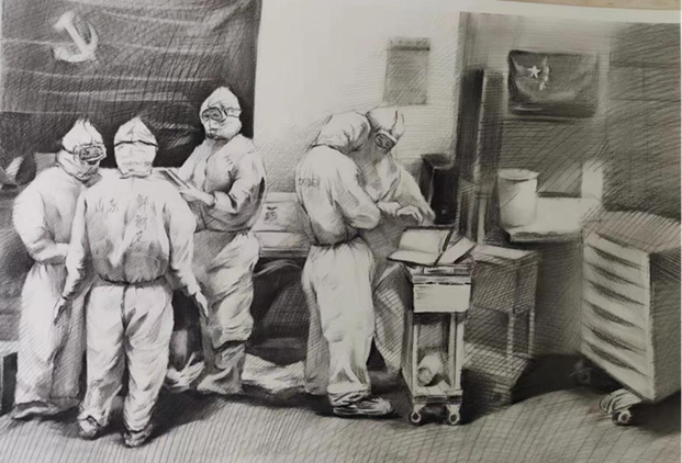 同学们以笔为剑,致敬白衣天使、礼赞抗疫英雄、鼓舞战“疫”士气。作品既生动活泼又温暖人心,得到了师生广泛好评,为坚决打赢疫情防控阻击战贡献了自己的力量。