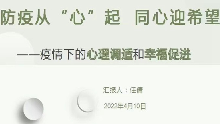 任倩老师分别从“感受乐观的力量”、“ABCDE乐观思维模式”、“心理调适建议”三个方面结合学生学习生活现状,为1000余名在线师生进行了生动的心理健康知识讲解。就疫情突发,校园临时封闭管理期内可能产生的焦虑多疑、惶恐不安、悲伤抑郁等心理问题提出了调试方法。通过线上互动让大家了解“共情”,唤醒“共情”,传递“共情”,以积极健康的心态面对生活,共克时艰!