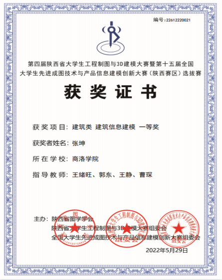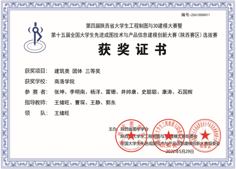 在不久前结束的第四届陕西省大学生工程制图与3D建模大赛暨第十五届全国大学生先进成图技术与产品信息建模创新大赛(陕西赛区)上,永利官网城乡规划与建筑工程学院派出15名参赛选手组成的团队,与省内57支队伍的730余名选手进行了激烈角逐,取得单项一等奖1项、二等奖2项、三等奖7项,并荣获建筑团体三等奖。这是建工学院师生参加该项比赛以来获得的最好成绩。