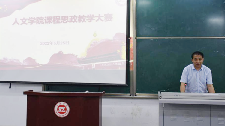 为深入贯彻落实教育部《高等学校课程思政建设指导纲要》文件精神,把思想政治教育贯穿人才培养全过程,根据教务处《关于举办yl23455永利官网2022年课程思政讲课比赛的通知》要求,在前期各系初赛的基础上,人文学院于2022年5月25日1号教学楼多媒体4 教室举行了课程思政教学大赛院级决赛。特邀永利官网副校长王新军、客座教授韩鲁华、工会副主席鱼小强、督导与评估中心主任张晓倩、人文学院院长张文诺、马克思主义学院刘敦俊、经济管理学院房琳担任评委,学院全体教师及部分学生代表观摩比赛。人文学院副院长任桂婷主持比赛。