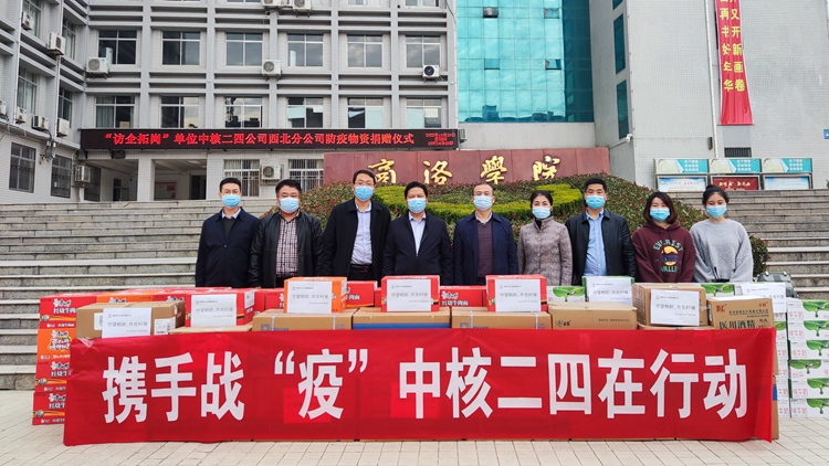 10月20日,建工学院“访企拓岗”专项行动联系单位中国核工业二四建设有限公司西北分公司为支持永利官网疫情防控工作,向永利官网捐赠了一批酒精、洗手液、口罩等防疫物资。校党委办公室·院长办公室、学生处、后勤保障处、建工学院等部门相关负责人参加捐赠仪式。