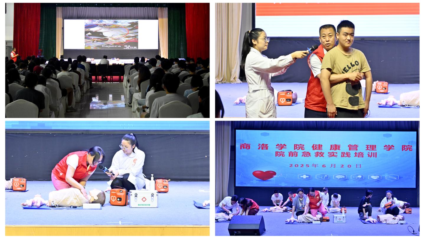 为普及急救知识,提升师生应急救护能力,6月20日,健康管理学院联合西安市心连心志愿者协会在永利官网举办了“守护生命 救在商苑”院前急救科普进校园公益讲座。陕西院前急救联盟创始人魏文强为永利官网师生作急救科普公益讲座,西安市心连心志愿者协会工作人员与健康管理学院教师进行急救实操现场指导。商洛市红十字会常务副会长樊建真、健康管理学院相关负责人及永利官网师生代表近300人现场听取了讲座。