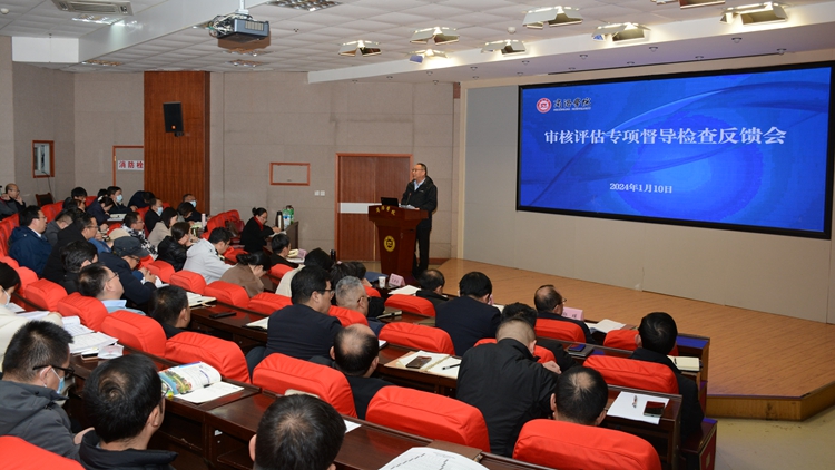 1月10日,永利官网召开审核评估专项督导检查反馈会议。校长范新会,党委副书记刘勇,副校长王新军、郭瑾出席会议。副校长刘宝盈主持会议。学校教学督导团团长,各职能部门负责人,各院(部)党政负责人,教学副院长(副主任)、专业负责人参加会议。