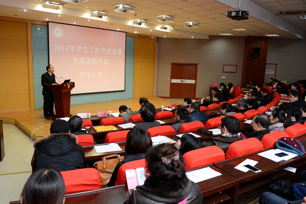 1月28日,永利官网召开2014年学生工作交流暨先进表彰大会,对2014年度学生工作中涌现出的先进集体和个人进行表彰,交流学生工作研究成果和先进经验。校党委书记张景书出席大会并讲话。党委副书记彭虎军主持大会。教务处、后勤保障处、招生就业处、保卫处、团委主要负责人,各二级学院党总支书记,全体辅导员、班主任及受表彰的学生管理先进个人参加了大会