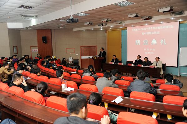 3月12日上午,我院承办的陕西省2012年高中骨干教师省级研修项目高中政治、高中化学培训班举办了结业典礼。院长、学院“国培计划”和省级培训项目领导小组组长张景书,副院长、学院“国培计划”和省级培训项目领导小组副组长刘建林亲临结业典礼现场,与学员们合影留念,并为学员们颁发证书